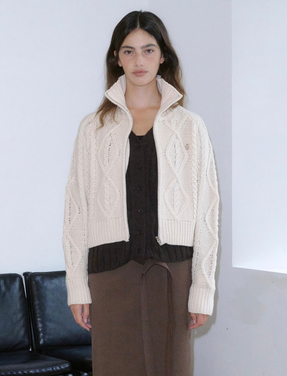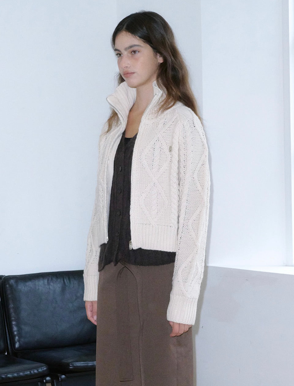 • High Neck Knit Zip-Up